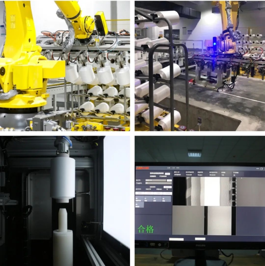 面對(duì)紡絲人工檢測(cè)存在的檢測(cè)時(shí)間長(zhǎng)、檢測(cè)效率低、易疲勞、用工難的問(wèn)題,福建恒申集團(tuán)通過(guò)外觀視覺(jué)檢測(cè)系統(tǒng)解決產(chǎn)品外觀檢測(cè)難題,提高產(chǎn)品合格率和效率,運(yùn)用機(jī)器視覺(jué)設(shè)備代替人眼完成檢測(cè)、測(cè)量和判斷,實(shí)現(xiàn)產(chǎn)品毛絲、絆絲、網(wǎng)絲、成型不良、油污、紙管破損等一體化外觀檢測(cè);檢測(cè)時(shí)間由之前人工檢測(cè)一車(chē)48錠絲餅需要5分鐘提升到每錠2.5秒,整車(chē)僅需2分鐘即可完成檢測(cè),效率提升2.5倍,準(zhǔn)確率由人工的96%提升至99%。