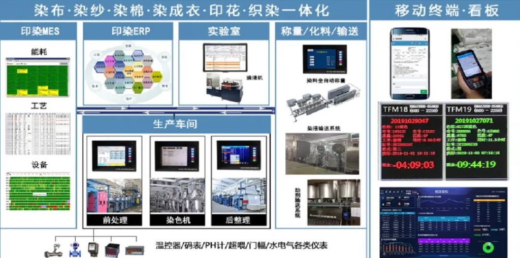 面對(duì)印染企業(yè)在生產(chǎn)過(guò)程中普遍存在的運(yùn)行效率低、能耗高以及管理方式較為粗放等痛點(diǎn),并結(jié)合當(dāng)前市場(chǎng)小批量、多品種的變化趨勢(shì),杭州天富公司成功研發(fā)了印染智造系統(tǒng)。系統(tǒng)全面覆蓋了從染布、染紗、染棉到染成衣,再到印花與織染一體化的全過(guò)程,實(shí)現(xiàn)了生產(chǎn)過(guò)程的全面數(shù)字化管理。