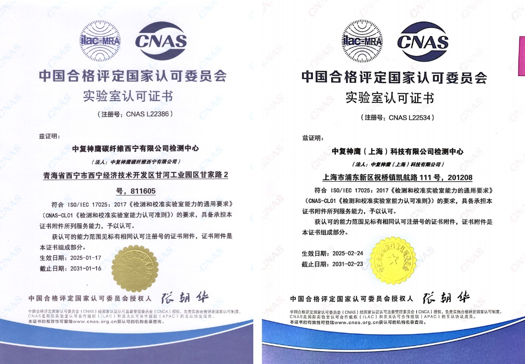 近日,中復神鷹所屬西寧公司檢測中心、上海公司檢測中心通過中國合格評定國家認可委員會(CNAS)監(jiān)督評審。至此,中復神鷹全級次已有三個檢測中心獲得CNAS頒發(fā)的實驗室認可證書,進一步印證了企業(yè)在碳纖維及其復合材料檢測領(lǐng)域的檢測能力、質(zhì)量管理體系及技術(shù)能力達到國際先進水平。